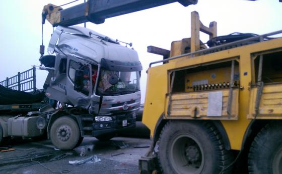 Rất may, tài xế chỉ bị thương nhẹ và thoát ra ngoài an toàn, cabin xe bị biến dạng. Những khối ống lớn từ phía sau xe rơi xuống đường cùng với dầu mỡ khiến các phương tiện qua đây gặp khó khăn. Xe cẩu chỉ bị hư hỏng nhẹ.