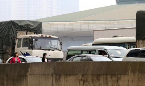 Do phải chôn chân cả giờ, nhiều tài xế phải xuống xe.